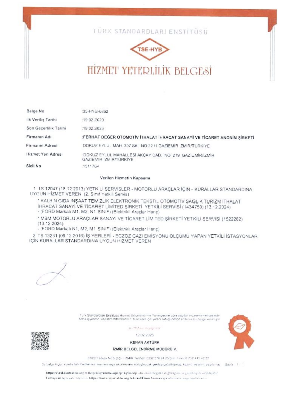 İl/İlçe: İZMİR/BERGAMAOTOFOM OTOMOTİV